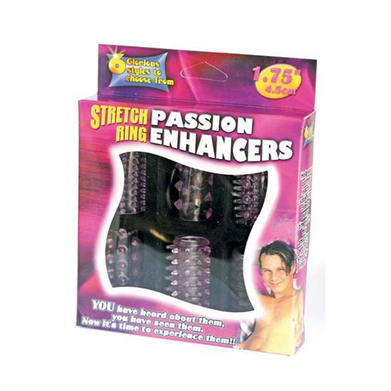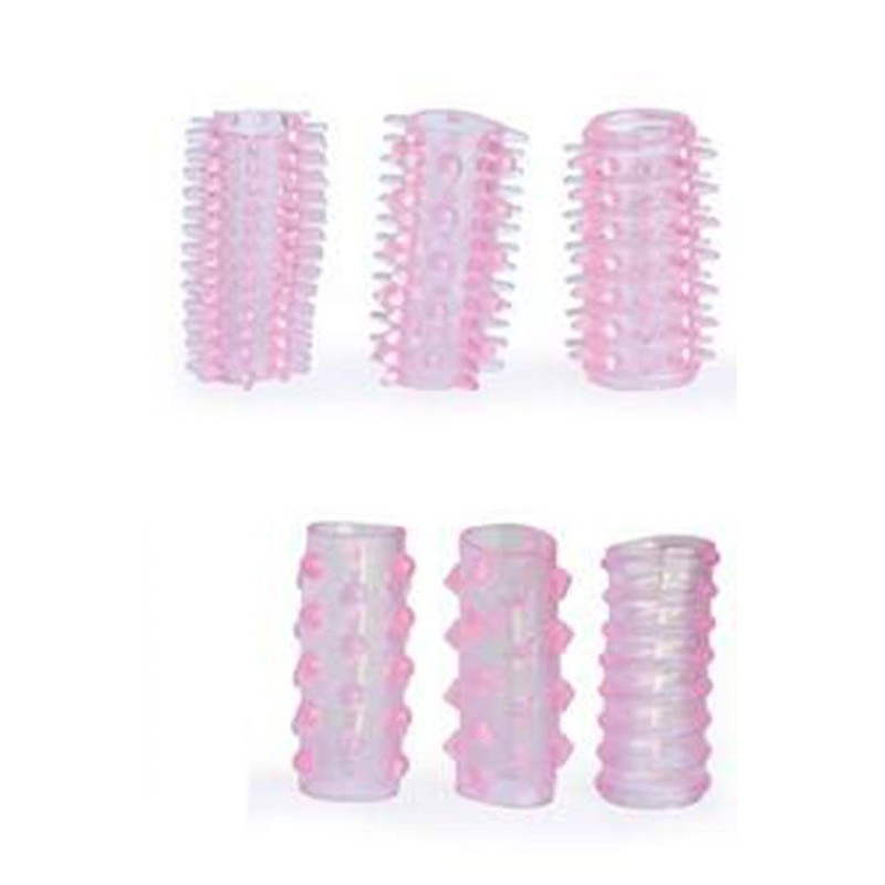 Jeux de 6 gaines pènis à picots variés à enfiler sur votre pénis en érection permettant de renforcer l'érection et d'augmenter les sensations de votre partenaire lors de la pénétration grâce aux picots stimulateurs.