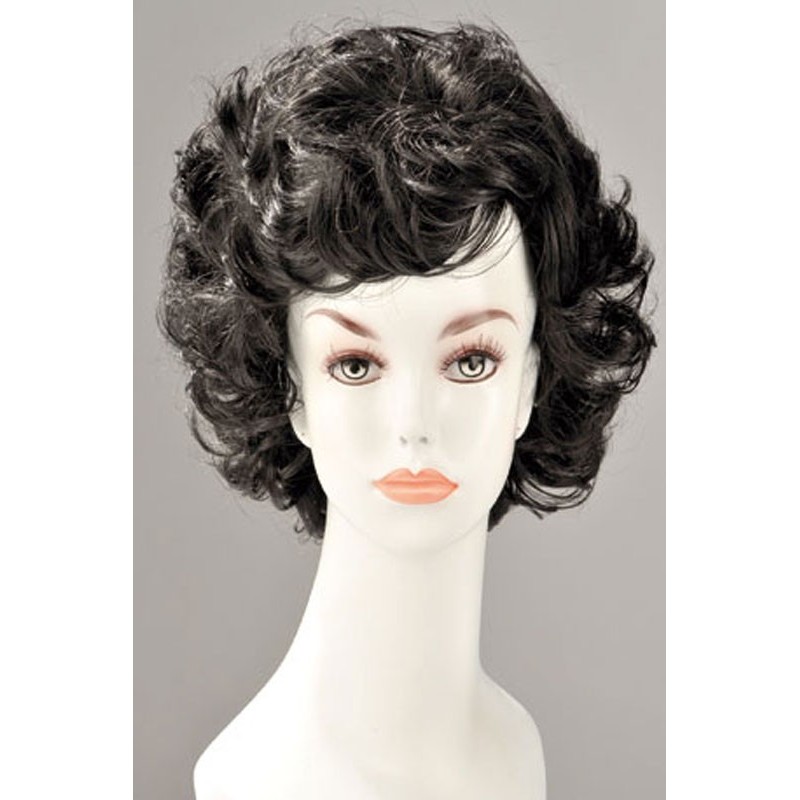 Perruque frisée blonde avec coupe Marylin en cheveux synthétiques.