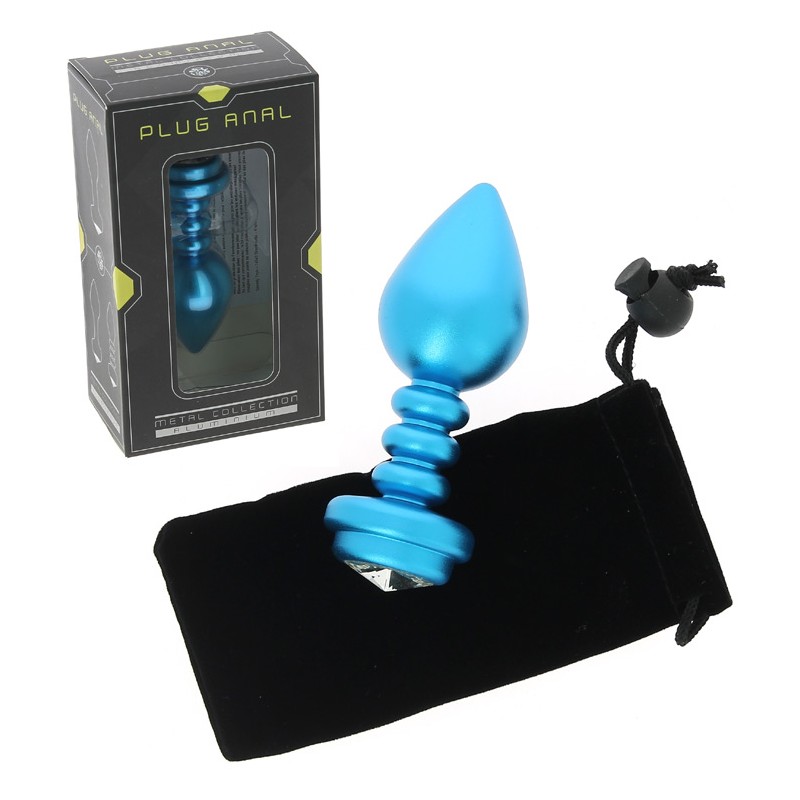 Plug anal strié en aluminium bleu avec strass cristal est le complice privilégié de vos parties de plaisir.
